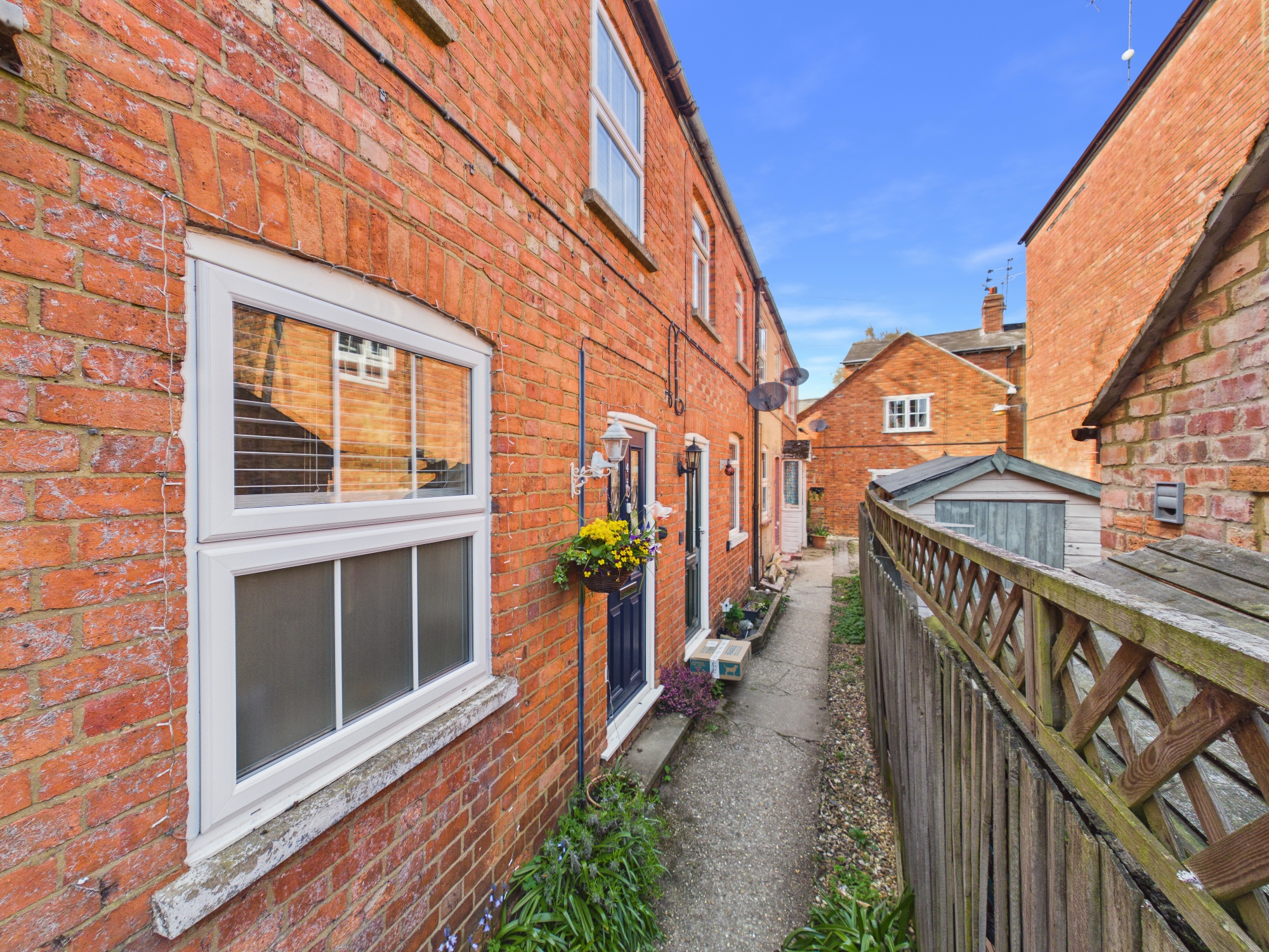 Victorian cottage in central Towcester hidden away from the road. Two double bedrooms, ground floor bathroom, kitchen, sitting/dining room and attic room. Generous fully enclosed south/west facing garden and courtyard garden. Available with a complete chain.