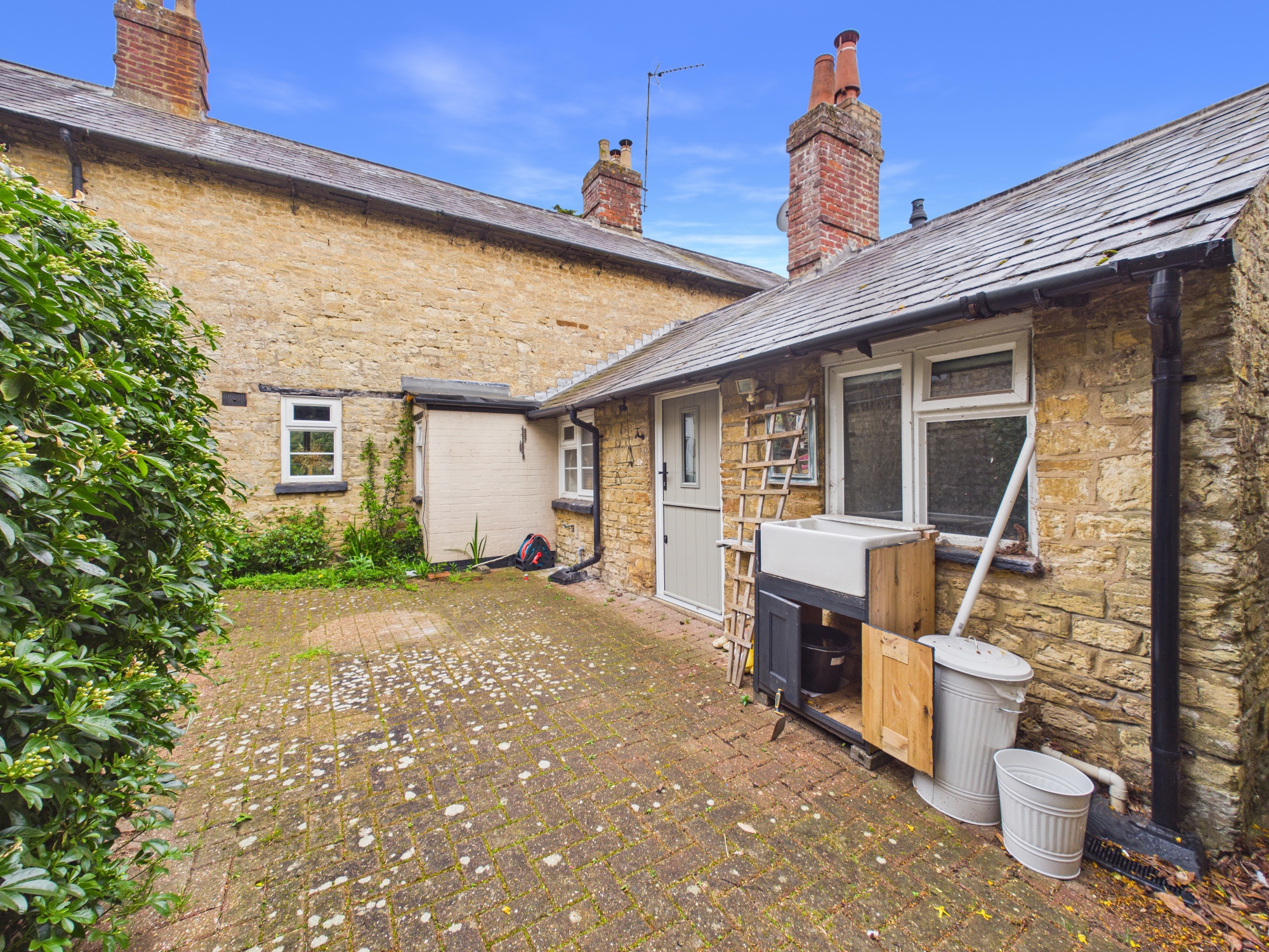 Character cottage in Whittlebury village. Two double bedrooms, ground floor shower room, kitchen and open plan sitting/dining room. Front garden, rear courtyard, generous rear garden with gated access to parking area for two vehicles. Vehicle access via Kennel Road. Available with a complete chain.
