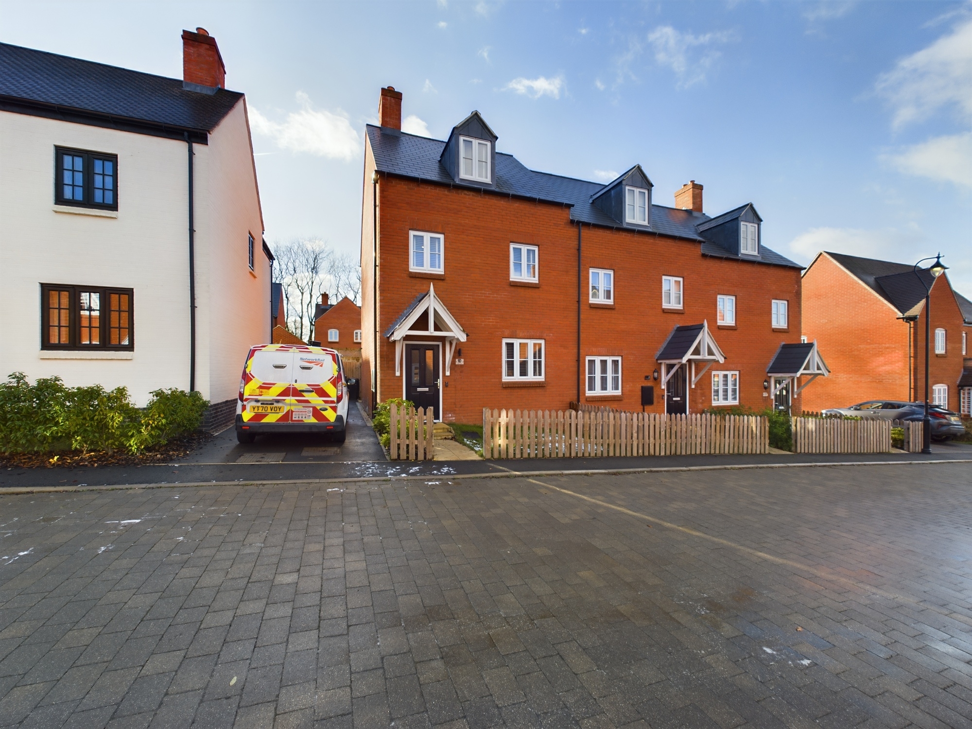 Modern three storey family home. Three double bedrooms, ensuite and dressing area to master, bathroom, sitting room, kitchen/dining room with utility area and WC. Garden and tandem driveway parking.