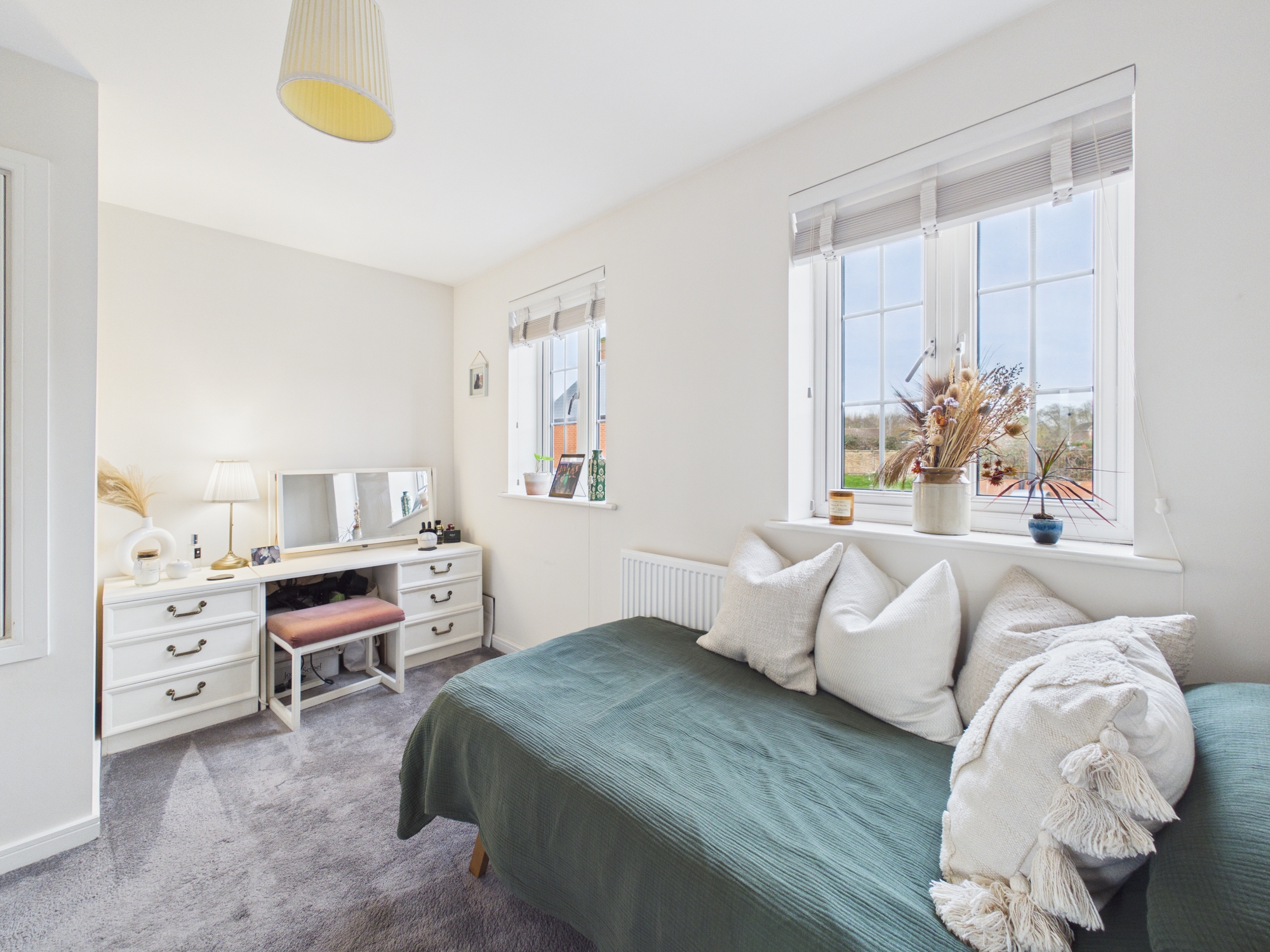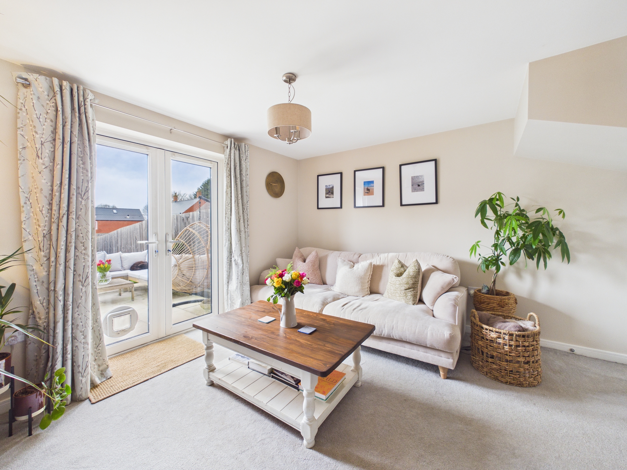 Modern two bedroom home at Farriers Court in Towcester built by Bellway Homes 2020. Two double bedrooms, bathroom, sitting/dining room, kitchen and cloakroom. French doors to a generous fully landscaped and enclosed west facing garden with tandem driveway parking and EV charger.