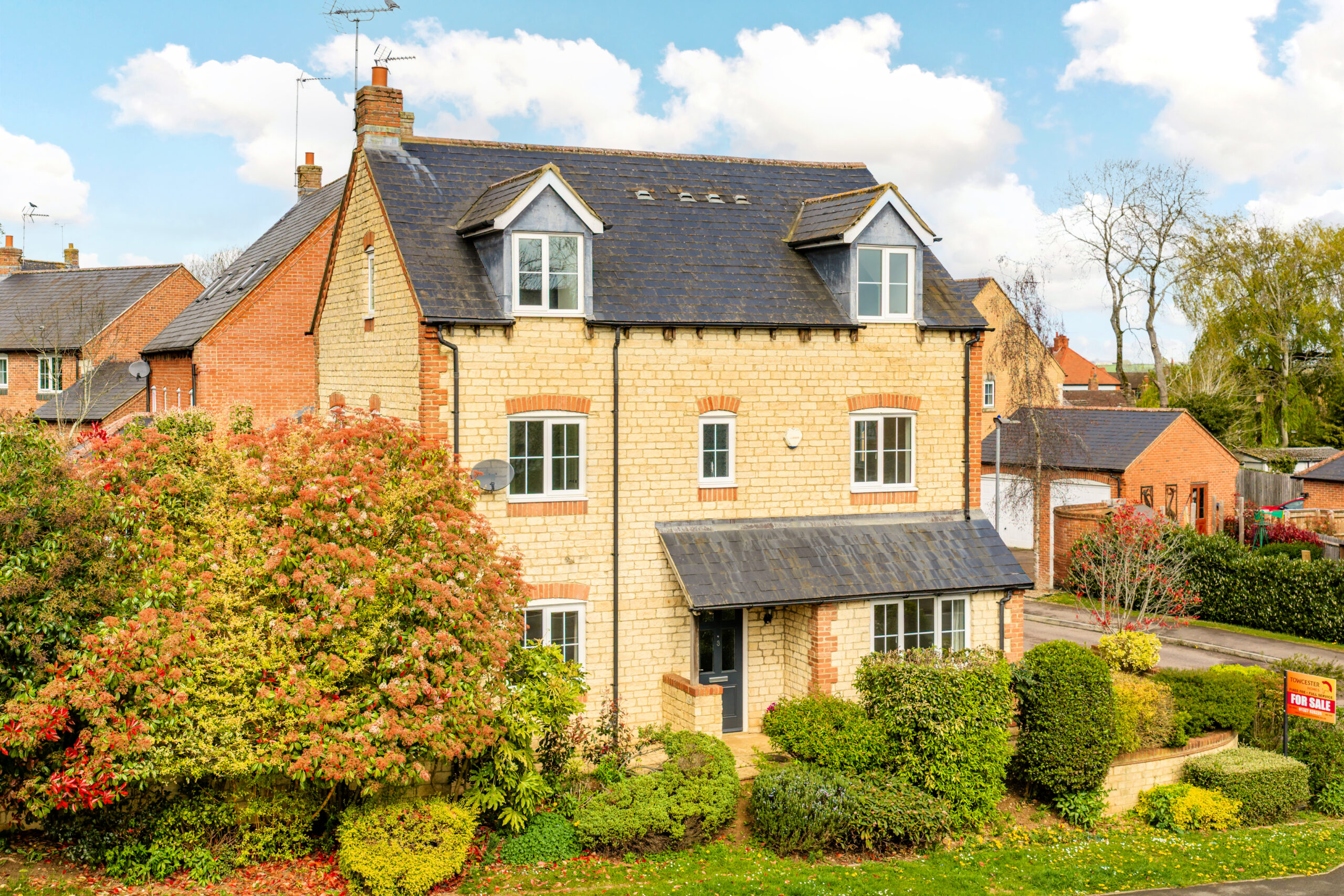Stone built detached three storey family home in Silverstone village. Five bedrooms, three ensuites, family bathroom, kitchen/breakfast room, sitting room, dining room and cloakroom. Fully landscaped south facing garden, driveway parking for several vehicles and garage. Available with no onward chain.